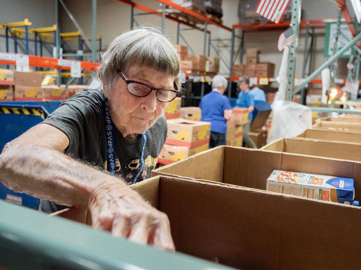 Helping weekly in the warehouse is in addition to the help she still provides at Most Holy Trinity’s food pantry, a SVdP satellite location where she originally began her SVdP volunteer career in 1977.
